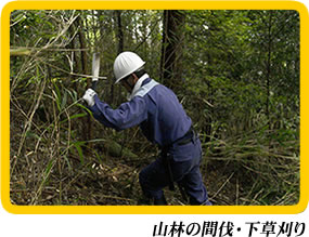 山林の下草刈りや間伐作業においても、ナタは必需品。